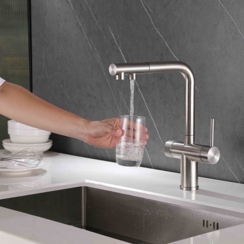 Premium 304 Stainless Steel Faucet: Scratch-resistant, sleek design installs in minutes. Ergonomic handle controls three mode water—hot & cold & purified—elevating daily kitchen tasks with durability and modern ease.